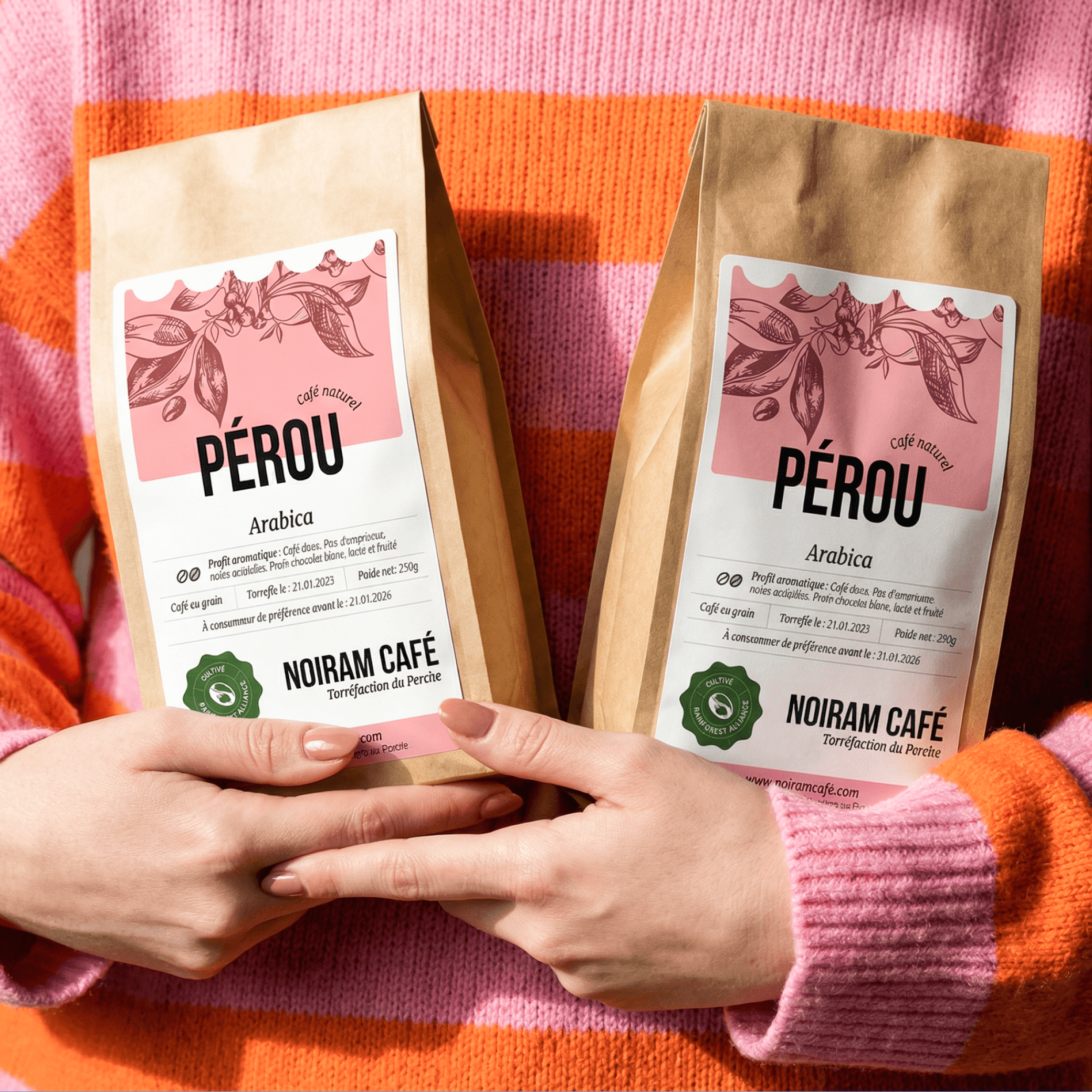 A sustainable brand identity for Noiram Café - Minimal, hand-drawn label templates on biodegradable packaging