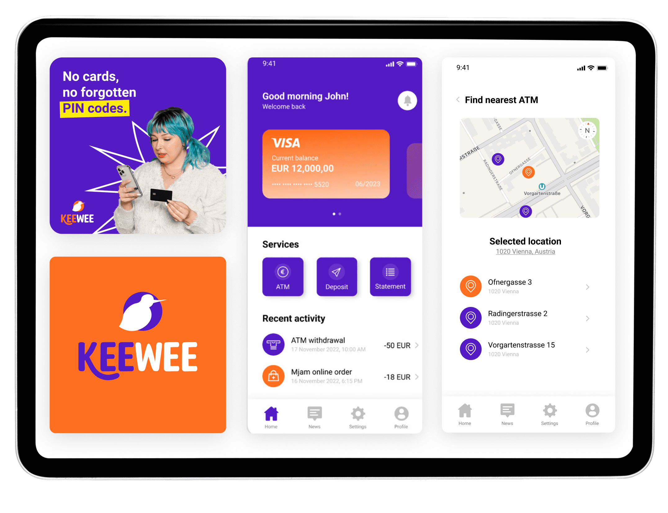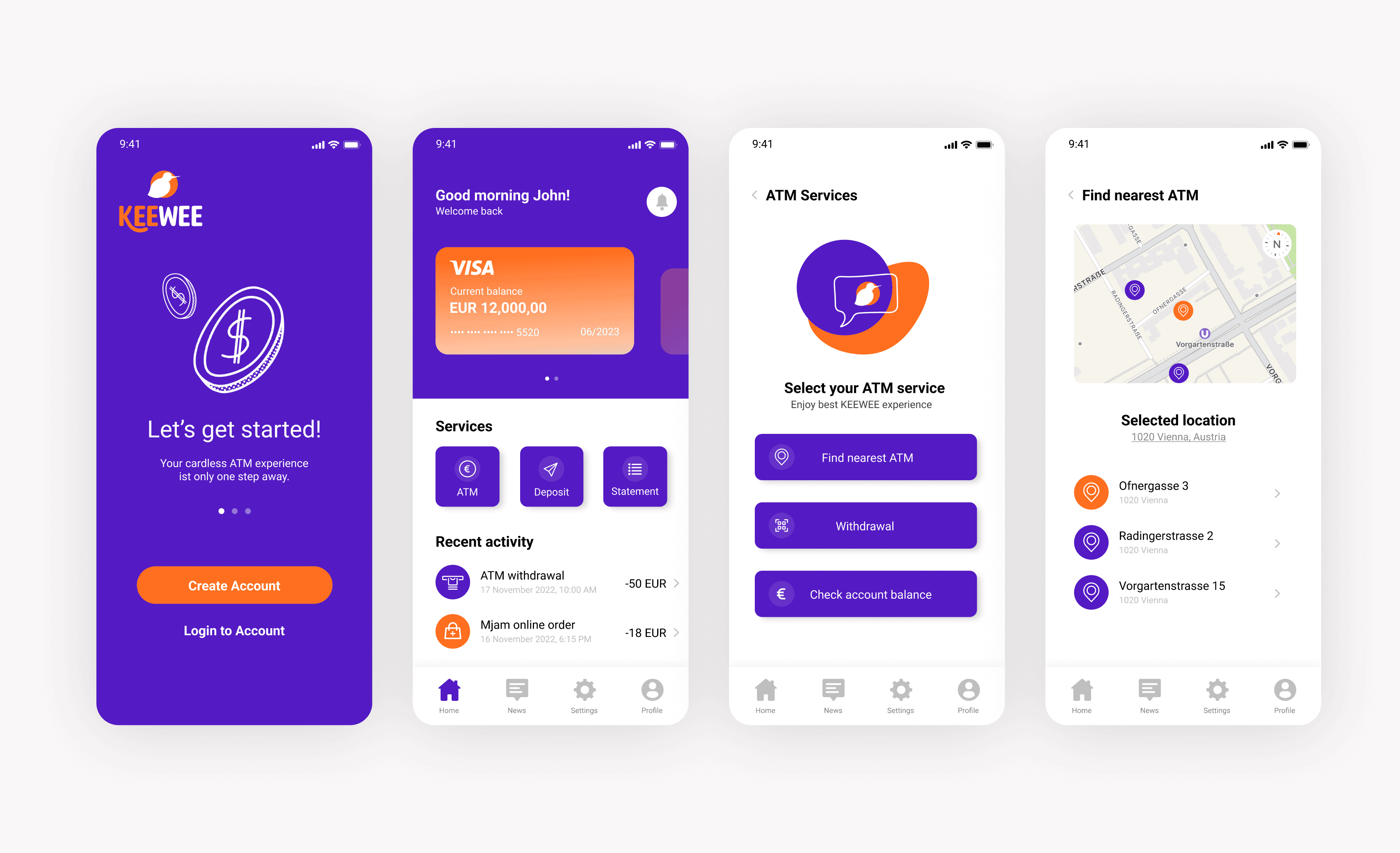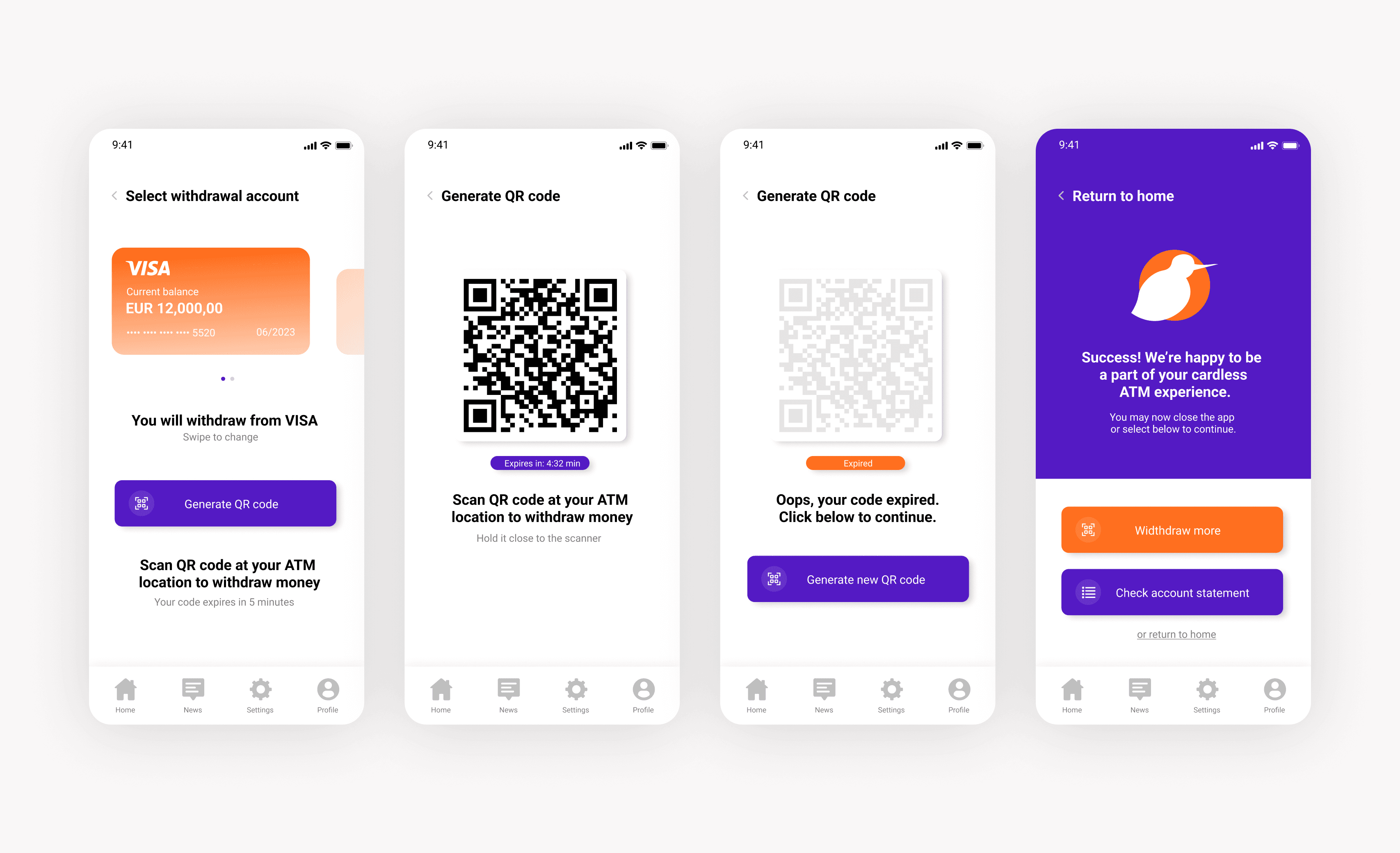 This is a self-initiated UX/UI concept exploring a simple, modern mobile banking experience focused on everyday actions such as payments, ATM access, and QR-based cash withdrawals. The project also explores how brand identity and illustration can support clarity and trust in financial products.