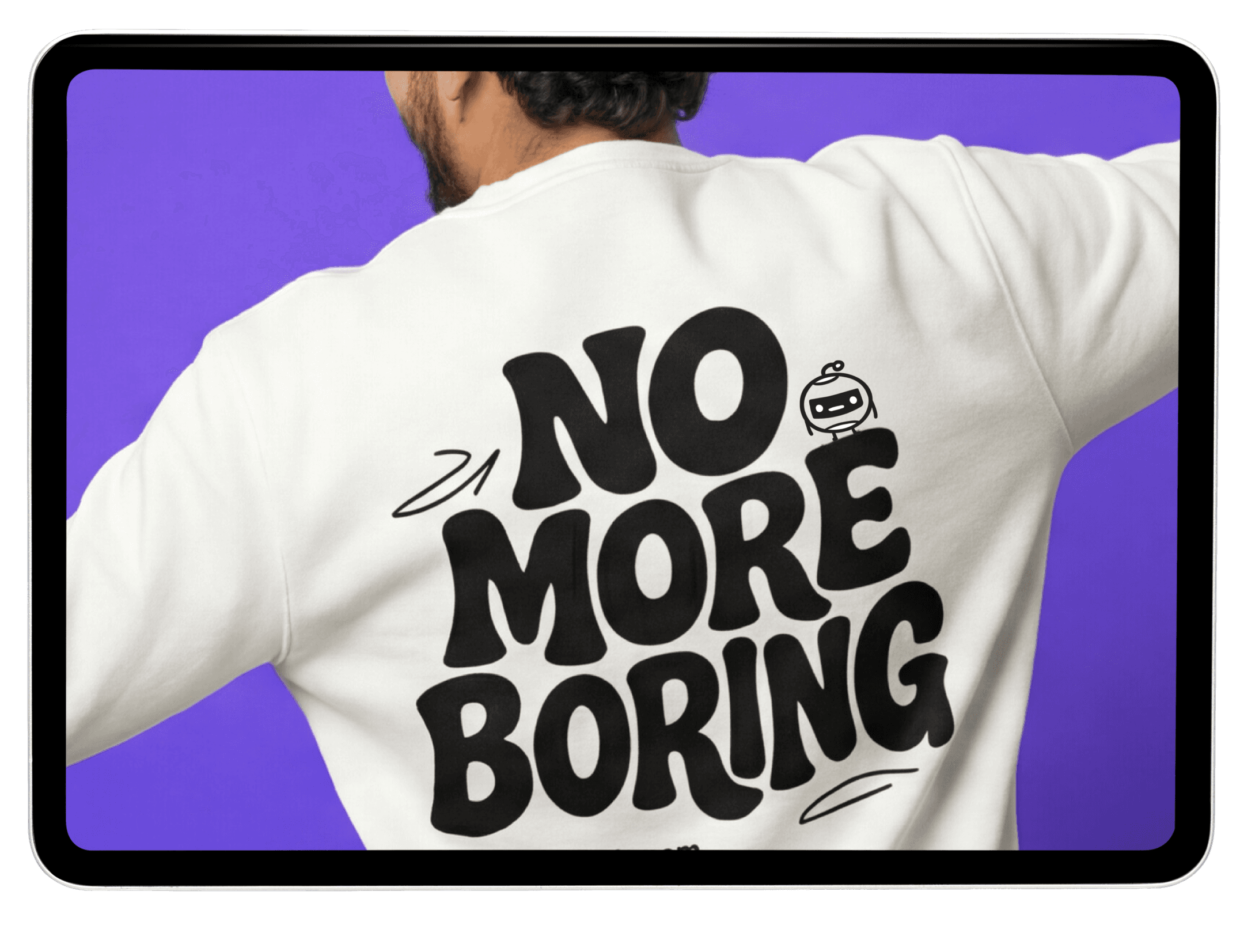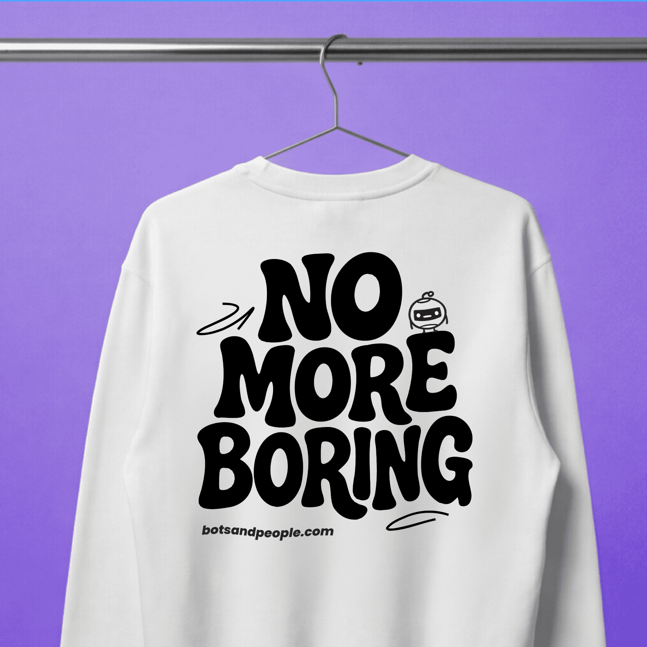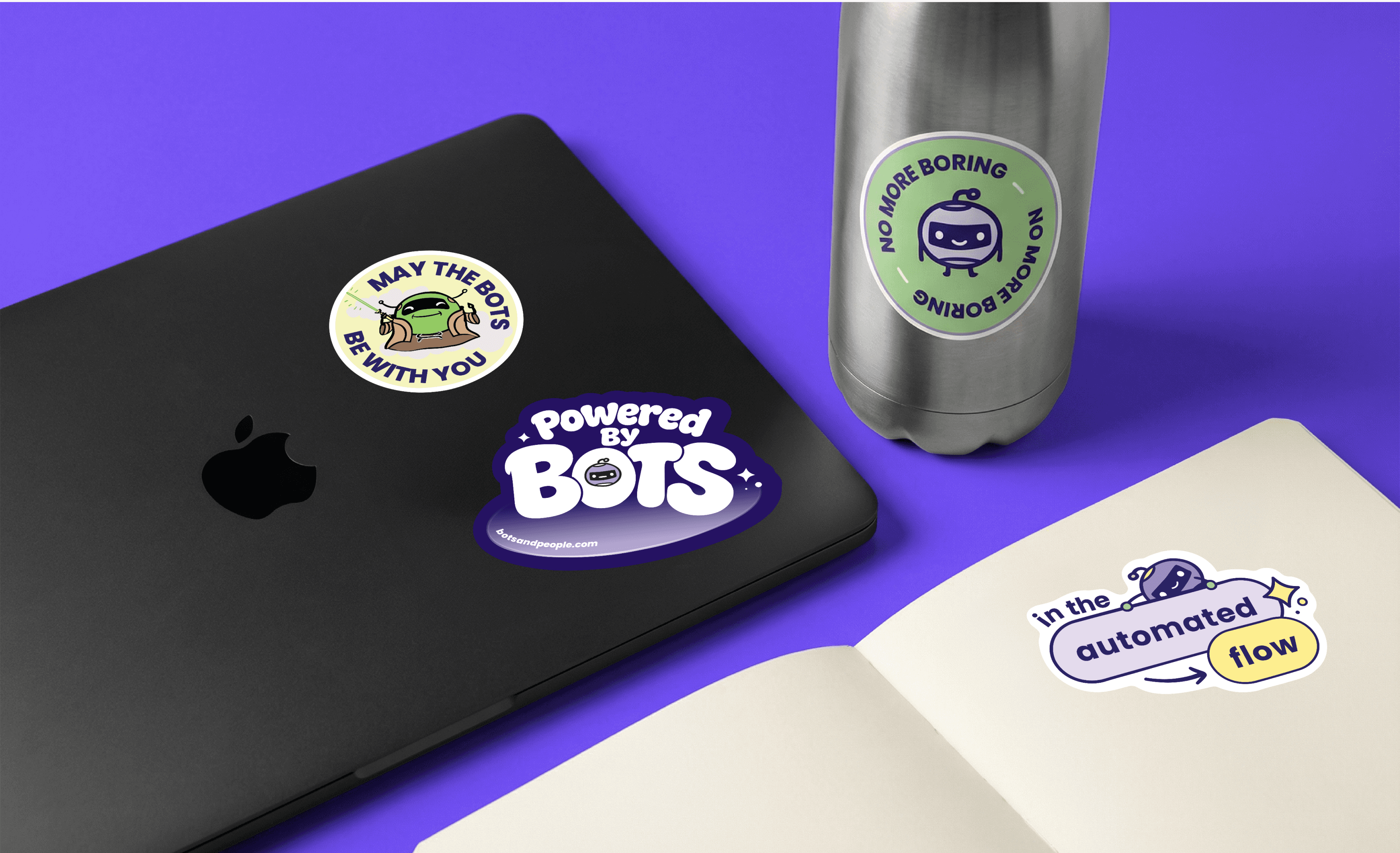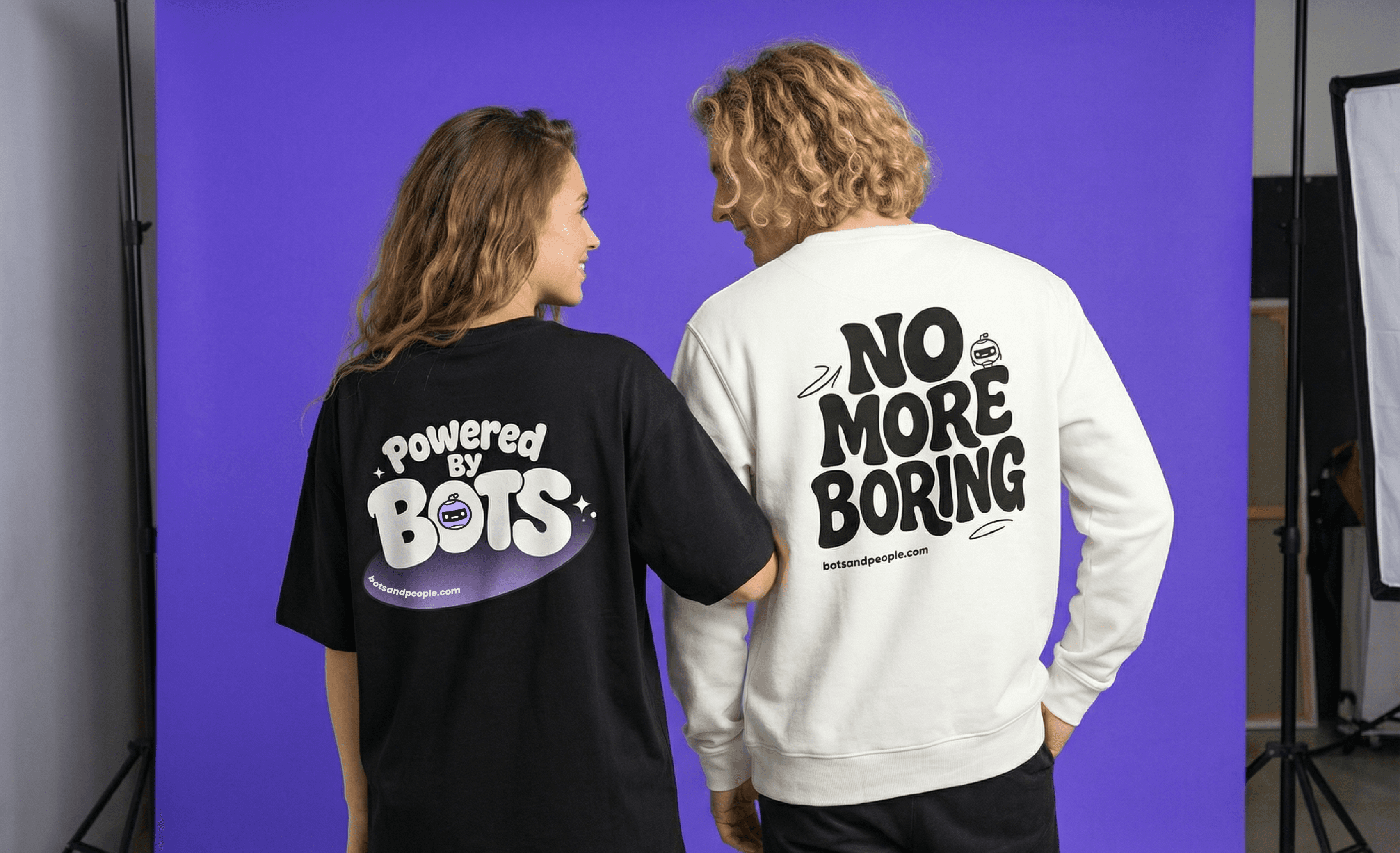 Bots & People merchandise is an internal brand project designed to translate the company’s core motto - “No more boring” into something tangible, wearable, and genuinely desirable. The goal was to move away from typical corporate merch and instead create streetwear-inspired pieces that people would actually want to wear outside the office. Sustainability was a part of the decision-making, not an afterthought. The project included apparel and stickers, designed to strengthen internal culture while subtly extending the brand into everyday life.