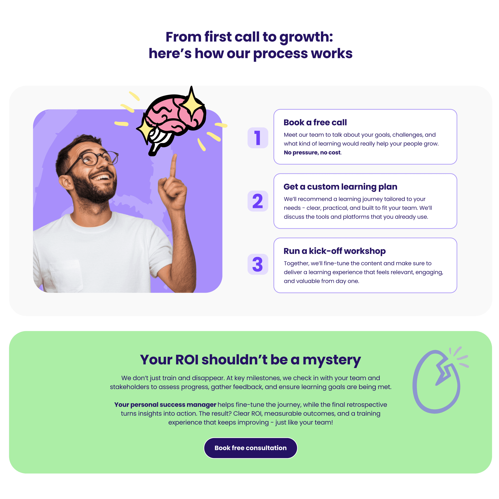 The result was a brand and website that communicate clearly, load faster, and reflect Bots & People’s identity as a forward-thinking, professional edtech brand - improving readability, user experience, and overall trust.